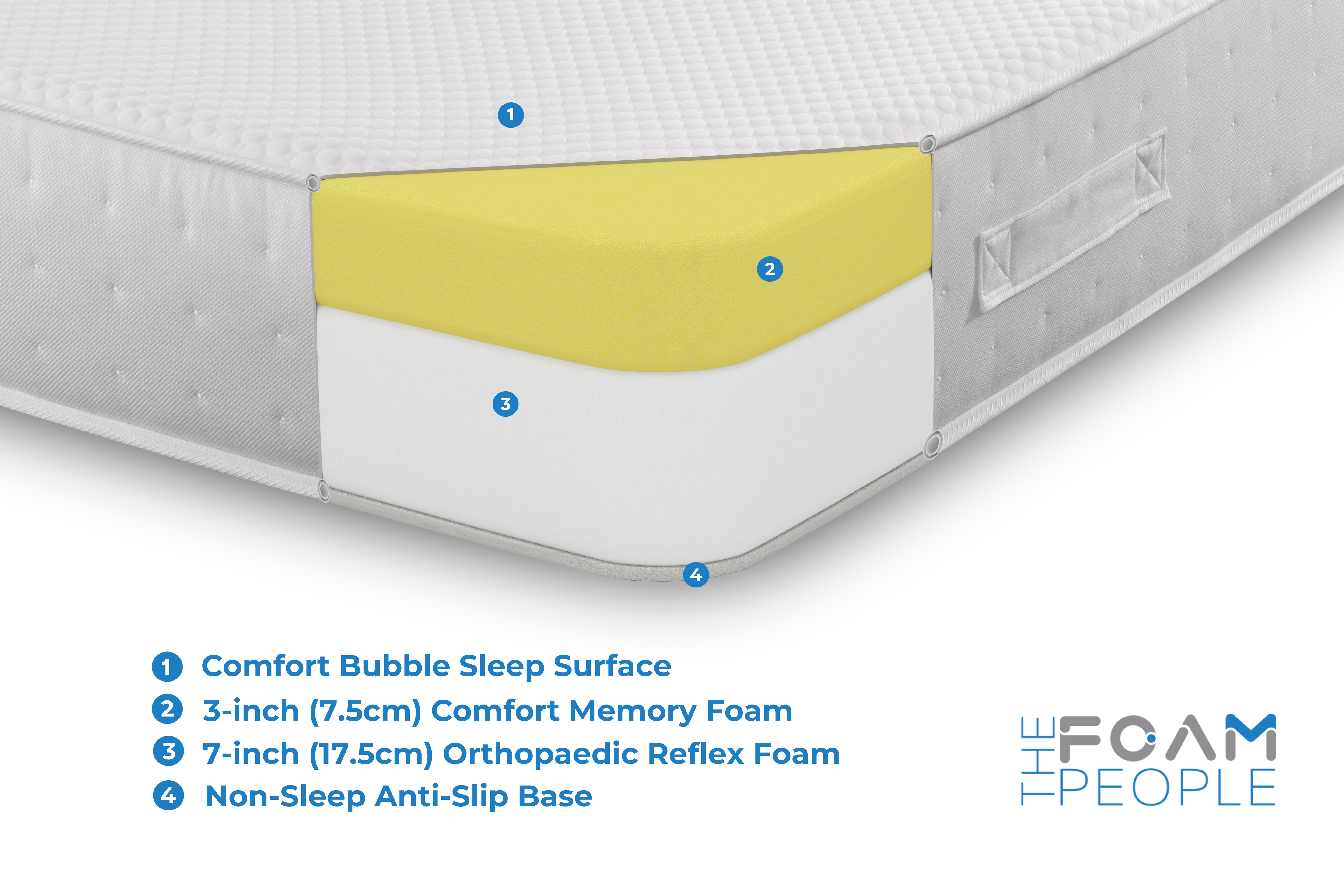 • Innovative 3-Tac Border: This stylish and functional design is complemented by four durable handles, making it easy to rotate and adjust the mattress.